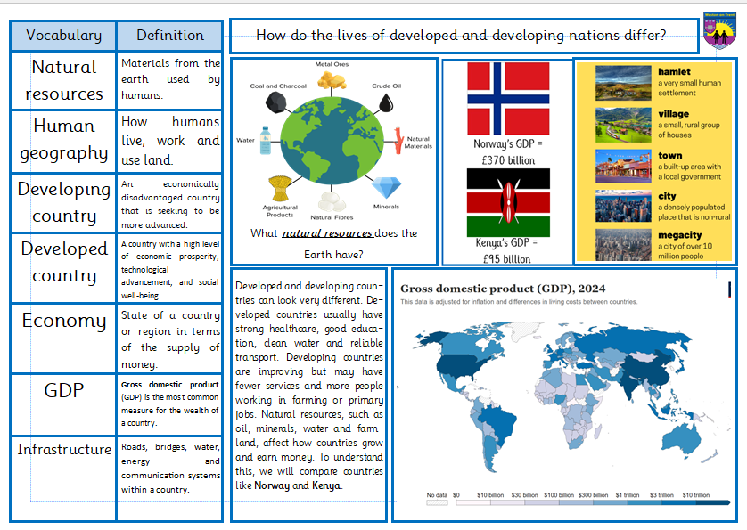 Please see the knowledge organiser for this term. Summer 1- 'How do the lives of developed and developing nations differ?'