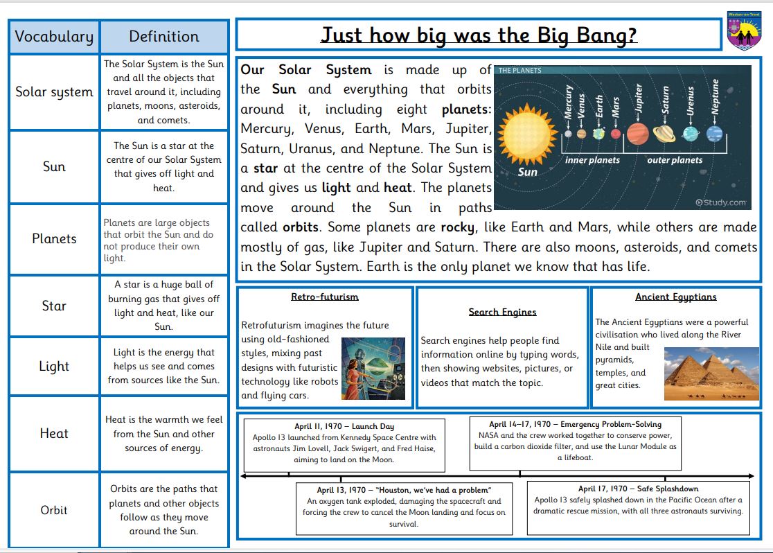 Please see the knowledge organiser for this term. 'Just how big was the Big Bang?'