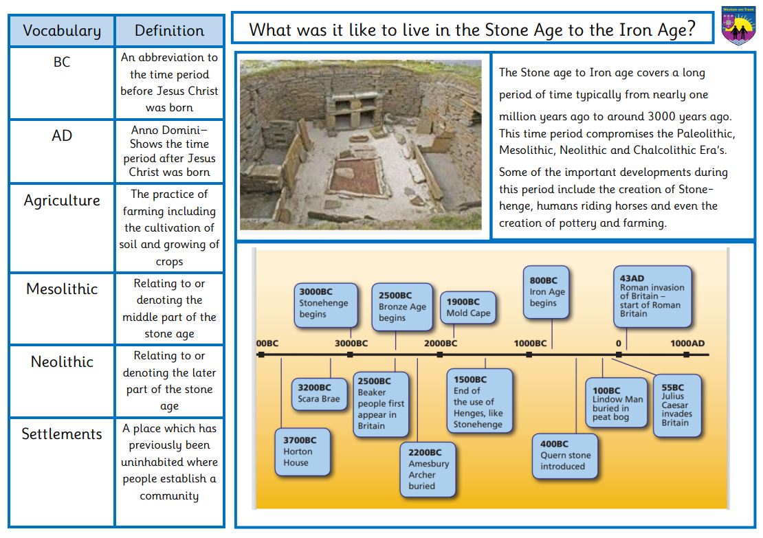 Please see the knowledge organiser for this term. 'What was it like to live in the Stone Age to the Iron Age?