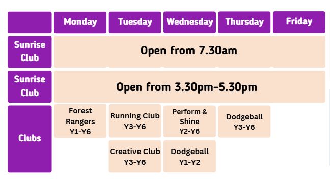 | Sunrise Club - 7.30am- 8.50am | £6.00 |